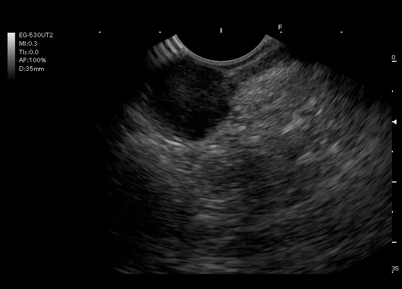Hipoechogeniczna zmiana w ścianie żołądka wywodząca się z warstwy mięśniowej