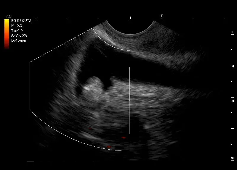 Pogrubienie ściany pęcherzyka żółciowego zawierające w ścianie torbiele, złogi cholesterolowe lub niewielkie przestrzenie bezechowe - adenomiomatoza pęcherzyka żółciowego