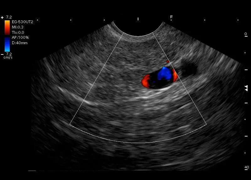 Obraz trzustki przypominający " plaster miodu" złożony z wyróżniających się stref ograniczonych hyperechogenicznymi odbiciami zwłóknień--budowa płacikowa trzustki