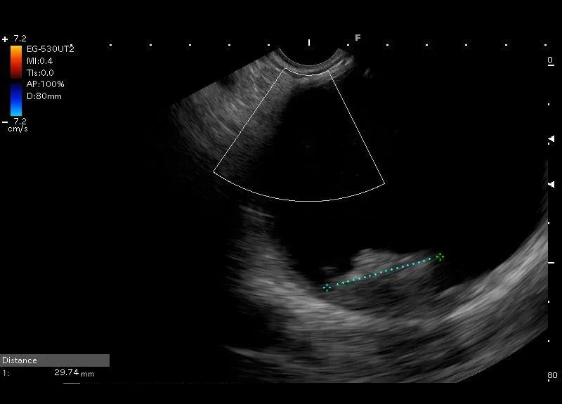 Zmiana torbielowata z hiperechogenicznym obszarem przyściennym