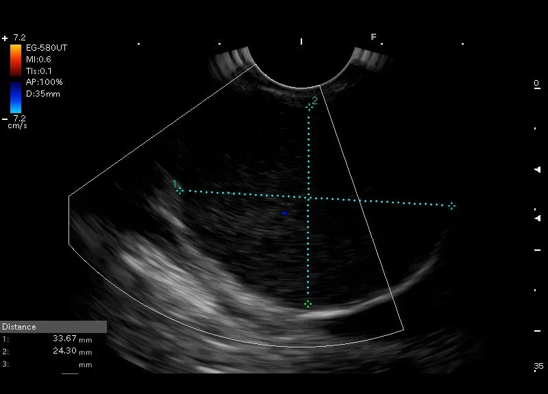 zmiana wielkości 34/24 mm, z drobnymi bezechowymi przestrzeniami oraz